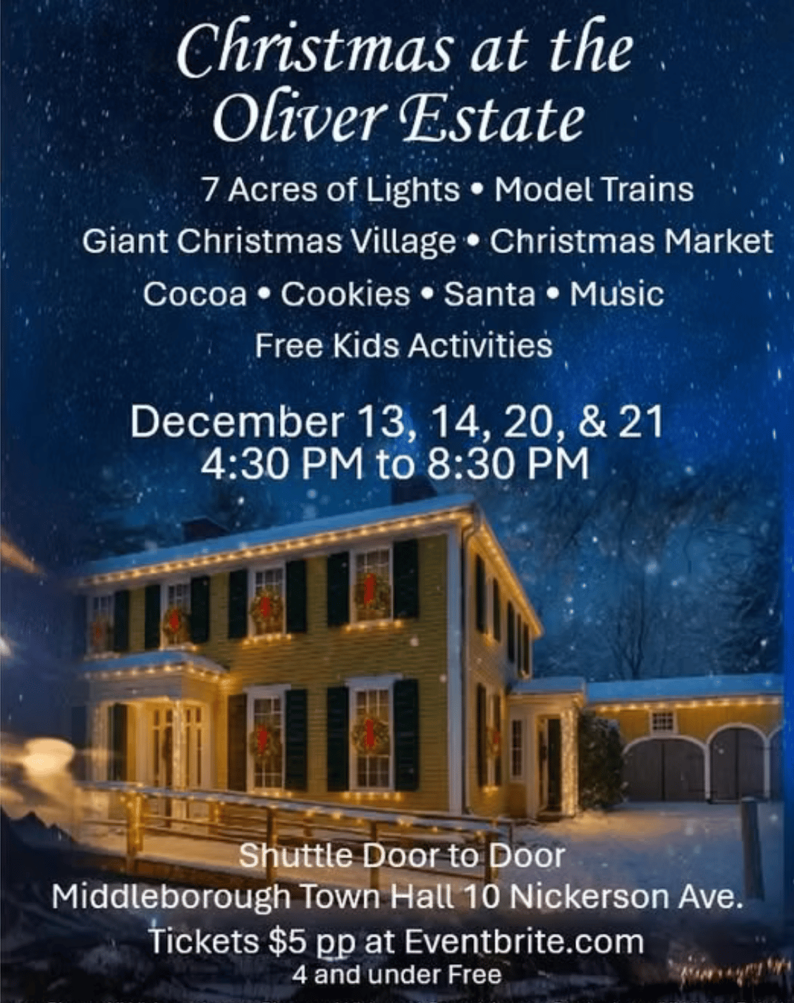 Christmas at the Oliver Estate in Middleborough 4:30-8:30pm (ticketed event) - Multiple dates are available